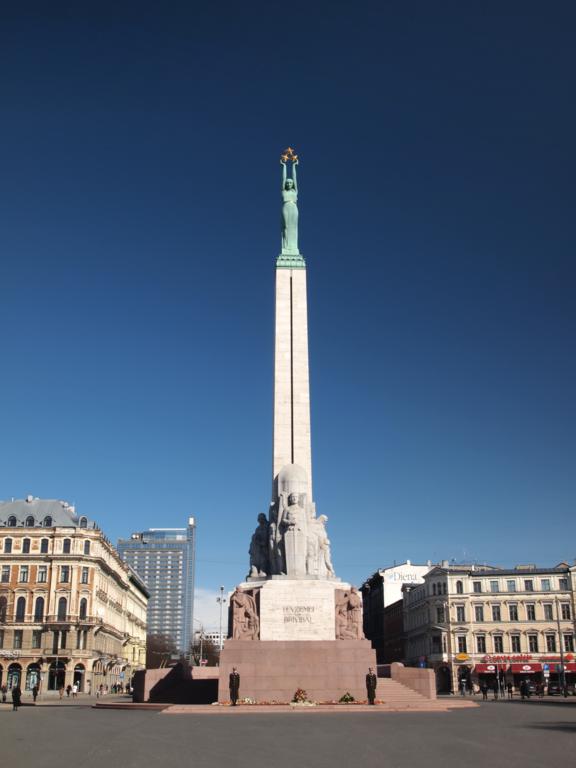 Nằm ngay cạnh khu phố cổ là Freedom Monument, đóng vai trò như kiểu Lăng Bác với vườn Hồng nhà mình, lúc nào cũng thấy có hoa đặt dưới chân tượng và 2 anh lính đứng canh. Ở quảng trường này còn có cột đồng hồ Laima, được giới thiệu là nơi hẹn hò của các đôi tình nhân thời Xô Viết, một vườn hồng phiên bản Latvia.