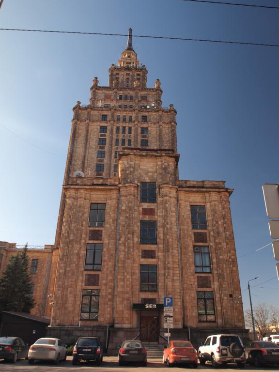 Riga cũng có một cái tháp phong cách chồng đắp bê tông đậm chất Xô Viêt tương tự tháp ở Warsaw, nhưng quy mô bé hơn, nhìn cũng không kém phần u ám.