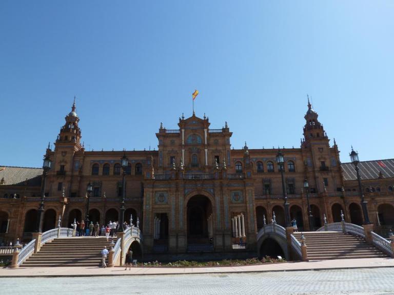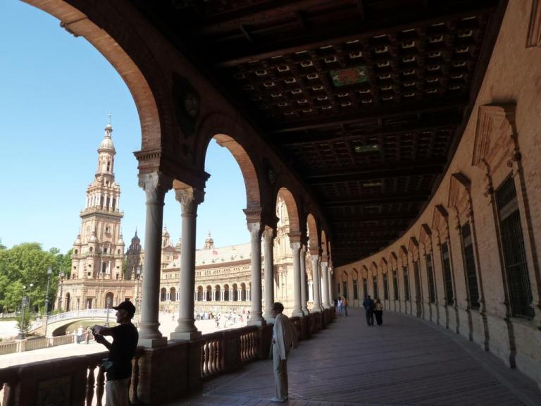Một điểm thăm quan của Sevilla mà mình rất thích nữa là Plaza de España, được xây theo phong cách Tân Phục Hưng. Theo thị hiếu tầm thường của mình thì cái này phải nói là quá đẹp, là bối cảnh trong bộ phim Lawrence of Arabia, Star Wars, hay gần đây là The Dictator.