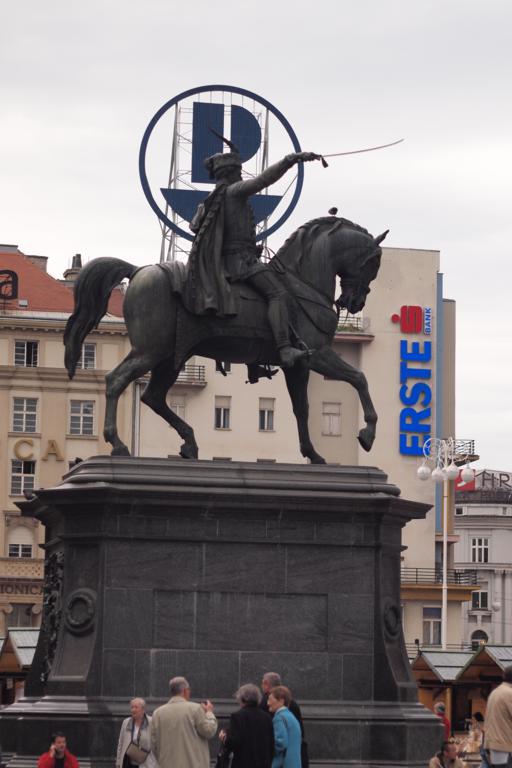 Tượng ở trung tâm Zagreb. Trước đây mình cũng tưởng là tượng hiệp sĩ cưỡi ngựa nếu ngựa 1 chân giơ lên trời là bị thương trong chiến trận, 2 chân là tử trận còn 0 chân là lành lặn, nhưng hóa ra là chỉ là lời như đồn.