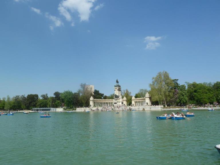 Lại nhân nhắc đến vườn, ở Madrid có công viên Retiro vừa to vừa đẹp, lại đúng mùa hoa nở, gió nhẹ thiu thiu trong ánh nắng vàng, nằm trên bãi cỏ đưa hồn vào giấc mộng thật là tuyệt vời.