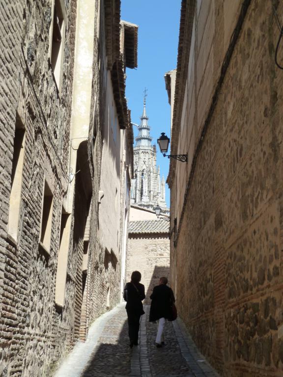 Trung tâm Toledo mang đậm nét Trung cổ, với những con phố nhỏ lát đá ngoằn nghèo. Không biết hồi xưa làm sao có thể đi ngựa vào những con đường như thế này được nhỉ, hay là muốn đến nhà ai thì cũng phải gửi xe ngoài ngõ?