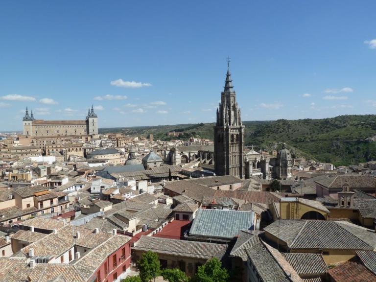 Nằm cách Madrid khoảng 1 tiếng đi bus, Toledo vẫn giữ được nét cổ kính của mình. Tuy là một thành phố nhỏ nhưng Toledo có một quá khứ hào hùng chẳng kém các thành phố khác ở TBN. Toledo được công nhận là di sản văn hóa thế giới, bởi những giá trị văn hóa đặc biệt của mình. Thành phố này vốn là thủ đô của TBN trong một thời gian dài, bởi mãi đến thế kỉ 16 thủ đô của TBN mới chuyển về Madrid. Chính bởi thế nên tuy kinh tế phát triển kém xa Madrid, nhưng Toledo lại giữ gìn được những công trình kiến trúc thời Trung cổ gần như nguyên vẹn. Thành Toledo được xây dựng đúng theo binh pháp thời Trung Cổ, nằm trên một ngọn núi và hướng mặt ra phía dòng sông. Địa thế này rất hay gặp ở các pháo đài ở châu Âu, bởi tiện cho việc đi lại giao thương nhưng cũng rất kín kẽ khi cần phòng thủ. Bạn nào xem phim về thời Trung Cổ suốt ngày thấy một lâu dài to tổ chảng nàng bơ vơ trên một ngọn núi ngọn đồi nào đó. Toledo thì không đến nối như vậy, bởi dù sao đây cũng từng là thủ đô của một trong những đế chế mạnh nhất trong lịch sử, nên nhà cửa trong thành san sát nhau chứ không để lâu đài nằm chơ vơ được.