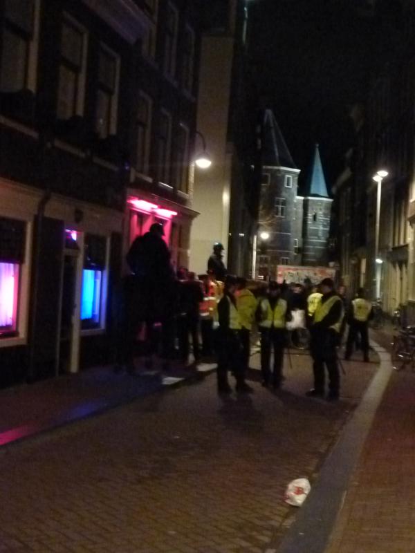Ở khu đèn đỏ cầm tiệt chụp ảnh tiểu thương, lớ xớ phát là cả đội cảnh sát xuất hiện ngay. Mật độ cảnh sát ở khu này có lẽ vào loại cao nhất châu Âu, khéo ngang nhà mình mấy hôm biểu tình mà không được hô to. Buổi tối ở đây thì rất nhiều chuyện buồn cười. Đi vài bước thì lại gặp từng nhóm từng nhóm đi trêu gái. Mình buồn cười nhất là đang đi thấy một đôi đang thảo luận gì đấy, rồi bạn nữ đi về phía tiểu thương thảo luận. Bạn trai mới đầu giả vờ kéo kéo bạn nữ đi, nhưng rồi một lát sau đã thấy đứng lấp ló ngó nghiêng, với ánh mắt nửa ngượng nửa háo hức nhìn rõ buồn cười. Kết quả cuối cùng thế nào thì mình chịu, nhưng nhiều khả năng là nghiêng về cái nửa háo hức kia.