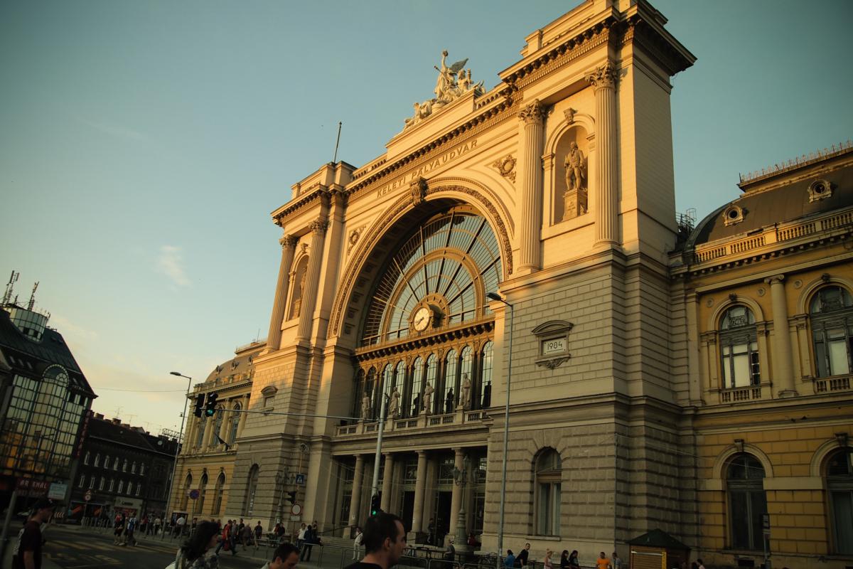 Một nhà ga ở Budapest, ngay bên hông có 2 hàng tàu