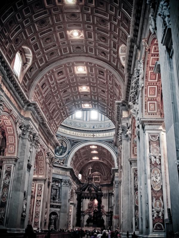 Vatican thì bé tẻo tèo teo, bé nhất thế giới, nên nếu xét về độ đẹp / diện tích thì chắc chắn Vatican cũng số 1 luôn. Nhà thờ thánh Peter là nhà thờ chính của Vatican, được xây dựng theo lối kiến trúc Phục Hưng, tuy không phải là loại nhà thờ yêu thích của mình nhưng mình cũng thấy choáng ngợp vì nó quá đẹp. Vào đây xếp hàng hơi lâu tý, nhưng được cái là miễn phí nên cũng phàn nàn gì.