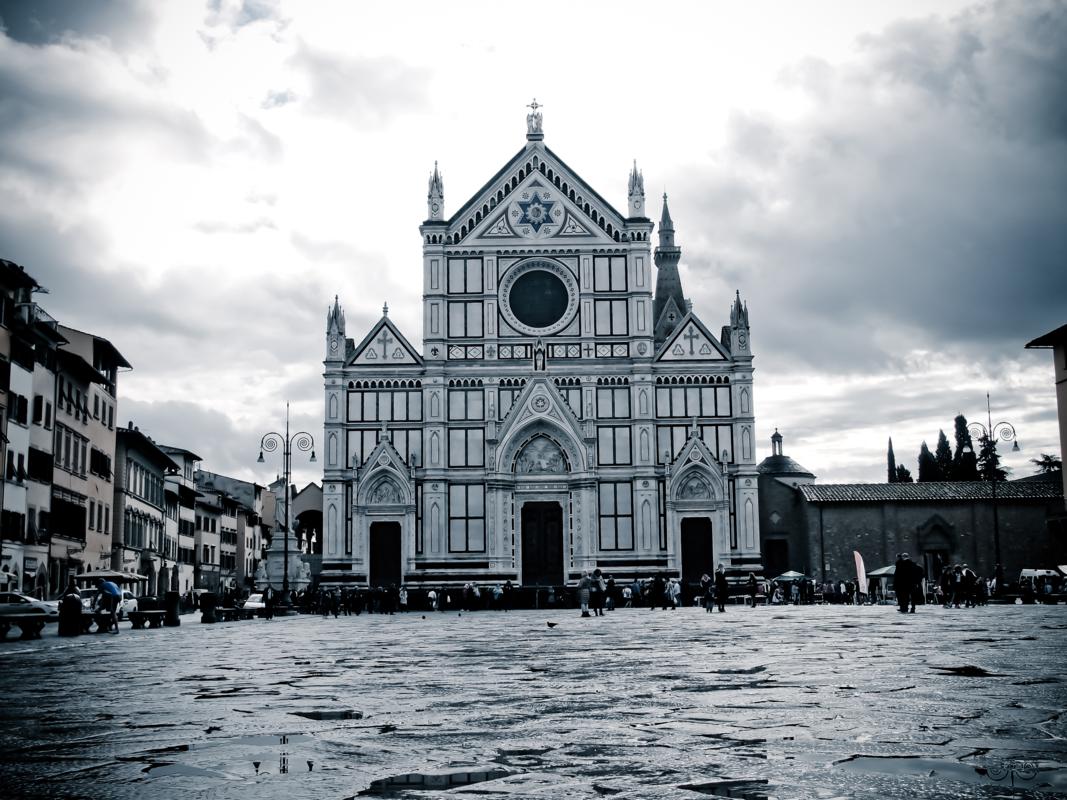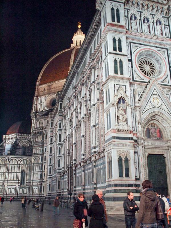 Bức tượng David này đẹp thì đẹp thật, nhưng nó không phải là cái mình ấn tượng nhất với Florence, bởi có một cái còn đẹp hơn, hoành tráng hơn gấp nhiều lần, ít nhất là đối với mình. Đó là Florence Duomo, nhà thờ chính của thành phố. Nằm chình ình to tổ chảng ngay giữa trung tâm, nhưng không phải là nhà thờ Gothic, Phục Hưng, hay Baroque thường gặp, mà là một kiểu kiến trúc gì mà mình cũng không biết nữa, chỉ biết rằng nó đẹp, rất đẹp, có lẽ là đẹp nhất trong tất cả các nhà thờ mình đã thấy. Một vẻ đẹp rất lạ. Rất cuốn hút. Với hai gam chủ đạo trắng đen, với những tượng thạch cao cầu kì, nhà thờ này tạo ra một vẻ đẹp kì ảo, khác lạ và đầy dị biết. Tuy bên ngoài đẹp hút hồn như vậy, nhưng bên trong thì bình thường, bởi những thứ trang trí đẹp đẽ đã bị mang vào bảo tàng bên cạnh rồi. Kiến trúc nhà thờ này có thể thấy trong một vài nhà thờ khác ở Florence, không biết là có phải do cùng 1 kts thiết kế hay không nữa.