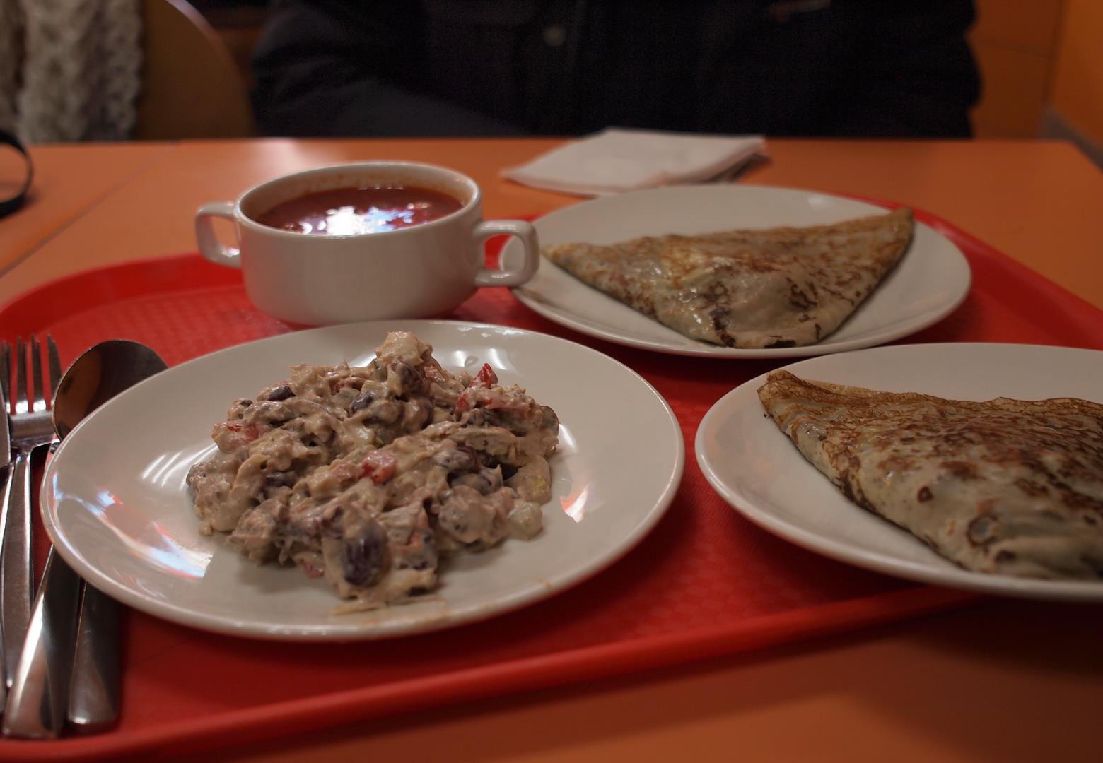 Không biết ở các chỗ khác ở Nga thì ăn uống ra sao, chứ ở StP rất nhiều quán pancake có nhân, dọc cái đại lộ Nevsky Prospekt có không biết bao nhiêu là hàng. Các bạn ở đấy tiếng Anh khá là kém, thái độ phục vụ thì so với HN thì hơn chút, nhưng mà nếu chỉ hơn một chút thì cũng đủ hiểu là kém đến thế nào.