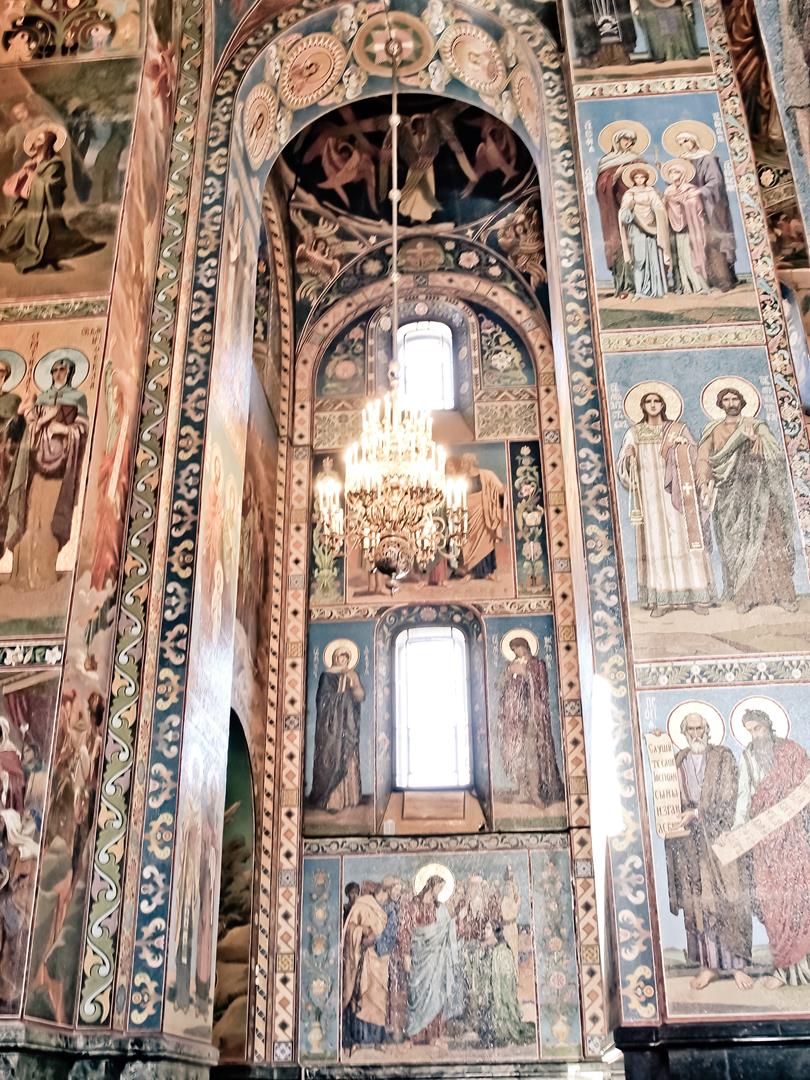 Chính vì StP được xây dựng từ đầu thế kỉ 18 nên nhà cửa, cung điện ở đây chủ yếu là kiến trúc Baroque màu mè hoa lá, hở ra là dát vàng, đắp tượng thạch cao. Mình thì mình không thật sự thích mấy cái kiểu hoa lá cành đấy lắm, nhưng mà phải nói là kiểu xây đắp đấy cực kì mất công. Nhà thở ở đây thì nhan nhản, mỗi cái một kiểu wow khác nhau, nhất là cái Spilled Blood. Tất cả họa tiết trang trí tường ở đây đều được ghép bằng mosaic, mình cũng không hiểu tại sao các bạn ý lại phải điên cuồng kì công đến vậy?
