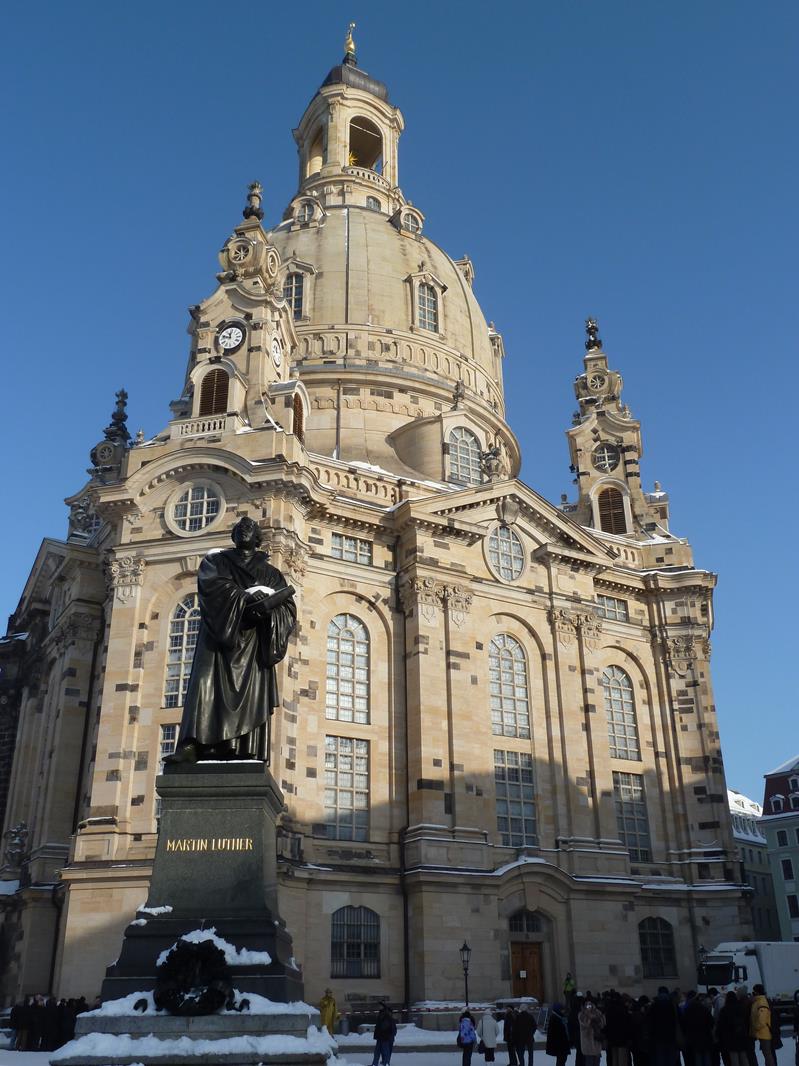 Ngoài cái Green Vault đấy ra thì nhà thờ Frauenkirche (dựa vào vốn tiếng Đức super basic của mình thì là nhà thờ quý bà thì phải 😀 ) cũng là một trong những điểm nổi tiếng nhất của Dresden. Đây là một trong những nhà thờ Tin Lành to nhất châu Âu. Chẳng mấy khi thấy nhà thờ xây kiểu tròn tròn ở châu Âu, nên thấy ngồ ngộ.
