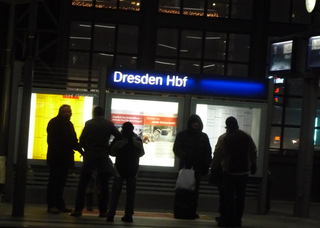 Dresden rất gần Leipzig, đi tàu chắc chỉ mất hơn tiếng. Vậy mà hôm mình đi chờ tàu trong mỏi mỏn dưới nhiệt độ âm mười mấy độ. Chả là lúc chờ tàu nghe thông báo gì đấy rặt bằng tiếng Đức, thông báo xong thì thấy mấy bạn chờ tàu cùng lục tục đứng dậy. Mình chả hiểu mô tê gì, chạy ra hỏi 1 bạn thì bạn ý lắc đầu quầy quậy bảo không biết tiếng Anh. Hỏi thêm mấy bạn nữa mới gặp được 1 bạn Thổ, bạn ý bảo tàu chậm sixeen minutes. Mình nghĩ cũng quái, sao lại chậm giờ lẻ loi thế, hỏi lại là 16 hay 60, bạn ý chắc như đinh đóng cột là 16. Ờ, biết đâu các bạn Đức nổi tiếng chính xác nên thông báo số lẻ thế. Lúc đấy cũng gần 11h rồi, trời thì lạnh, hàng quán cũng đóng hết, tặc lưỡi đứng chờ 16 phút thì cũng nhanh thôi nên quyết định ngồi lại sân ga chờ. Thời gian thấm thoắt thoi đưa, mấy cái 16 phút đã qua mà cũng chưa thấy tàu đâu. Cuối cùng phải gần 90 phút sau tàu mới đến, phải học tập đường sắt Việt Nam đi, chậm là báo chậm, không bao giờ đề ra mức thời gian chậm nên không bao giờ sai hẹn, kể cả dừng giữa đường 3-4 tiếng cũng không vấn đề gì.