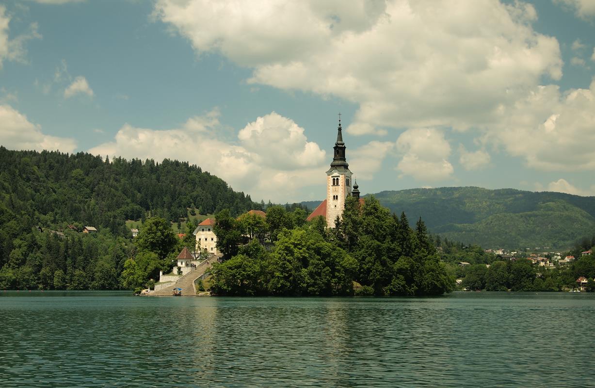 Thanh thản là cảm giác xuyên suốt trong mấy ngày mình ở Slovenia. Từ Ljubljana đi đến Bled tương đối gần. Bled là một cái hồ có vẻ khá nổi tiếng ở châu Âu. Bled không rộng lắm, chắc khoảng gấp đôi hồ Tây. Nước xanh mịn. Ở giữa hồ là một nhà thờ nhỏ. Cao cao trên đỉnh núi là một lâu đài cũng không to. Đến đây chèo thuyền ngắm cảnh nghỉ dưỡng thì phù hợp.