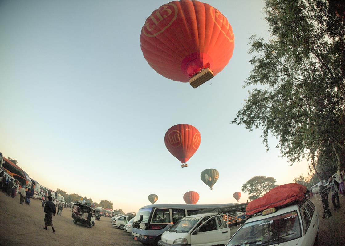 Theo lời kể của Somu – thanh niên lái xe ngựa của mình thì theo luật Myanmar người nước ngoài không được tự lái xe máy ở Myanmar, nhưng nay xe đạp điện Tàu giá rẻ ồ ạt tràn vào nên các bạn xe ngựa khó kiếm ăn hẳn. Vậy nên ở Bagan hiện tại có mấy kiểu tham quan dành cho khách du lịch: giàu có nhiều tiền thì đi khinh khí cầu, ít tiền hơn thì thuê xe ngựa 1 ngày đi những điểm chính, rồi thuê xe đạp điện hoặc xe đạp đi thăm những chỗ còn lại, ít tiền nhất thì đi bộ (mình đồ là chẳng có mấy bạn chọn phương án này). Buổi sáng thấy khinh khí cầu chi chít trên trời, kể cũng đã con mắt.
