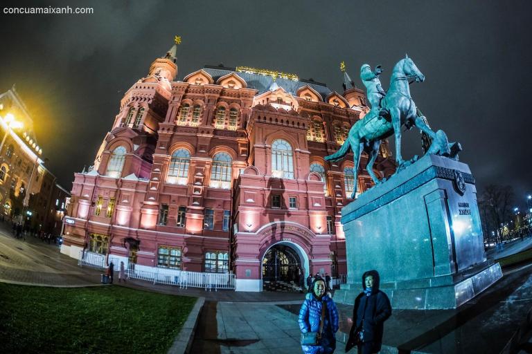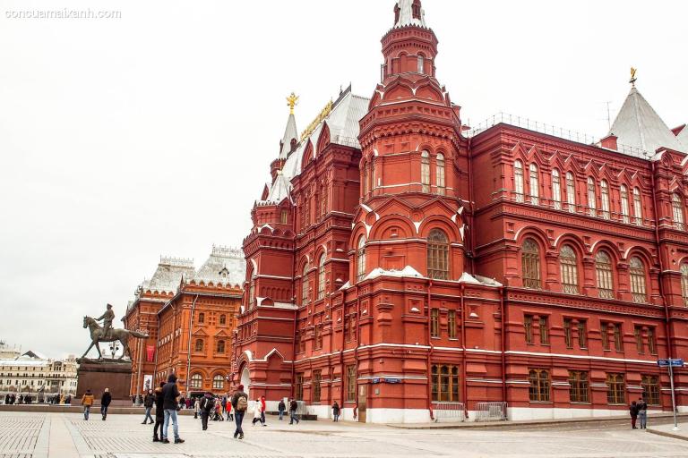Tiến bước tới Quảng trường đỏ, thật bất ngờ khi nhận ra quảng trường này bao quanh bằng các tòa nhà và tường gạch màu đỏ. Một trong những tòa nhà ở đây là bảo tàng quốc gia của Nga, tuy nhiên có vẻ các bạn Nga cũng không quan tâm đến khách du lịch lắm nên phần thuyết mình bằng tiếng Anh cũng được chăng hay chớ mà thôi. Bảo tàng này không có điểm nhấn như kiểu đồng hồ con công ở Hermitage, nên mình cũng hoàn toàn mãn nguyện với việc lướt nhanh như gió cưỡi ngựa xem hoa.