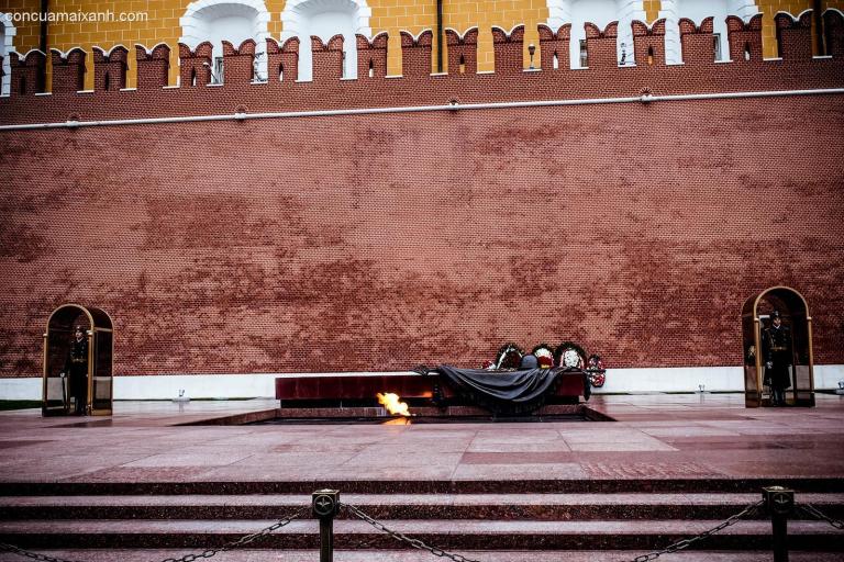 Lại rảo thêm mấy bước chân sẽ tới đài tưởng niệm chiến sĩ vô danh, với ngọn lửa vĩnh hằng tưởng niệm những người lính Xô Viết ngã xuống trong chiến tranh thế giới thứ 2. Nói gì thì nói rõ ràng các bạn Liên Xô hứng chịu tổn thất về người nhiều nhất trong WW2, riêng trân Stalingrad đã mất hơn 1 triệu lính. Nếu không có Liên Xô và Stalin chắc chắn lịch sử thế giới sẽ khác, mà điểm khác biệt rõ ràng nhất là không có Liên Xô và Stalin (chắc luôn).