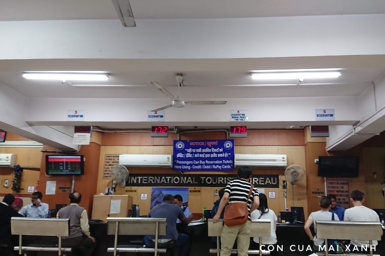 Ở ga Delhi có một phòng bán vé chuyên dành cho khách du lịch, mở cửa 24/24. Có lẽ các bạn sợ nhiều người vào phòng bán vé này quá nên phải phải đặt phòng này ở một góc khuất và dấu tịt biển hiệu đi, tìm mãi mới ra. Mở cửa bước vào phòng thì đúng là một thế giới khác, cảm giác trở về những năm 90 của thế kỉ trước. Các bác nhân viên tinh thần làm việc ngất trời, làm một tí nghỉ hai tí. Trong một tí làm thì cũng phải 1/3 tí buôn chuyện và uống trà. Máy tính thì chắc chạy MS Dos, giao diện người dùng thân thiện nhất luôn.