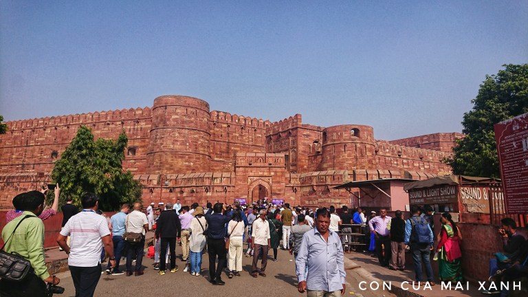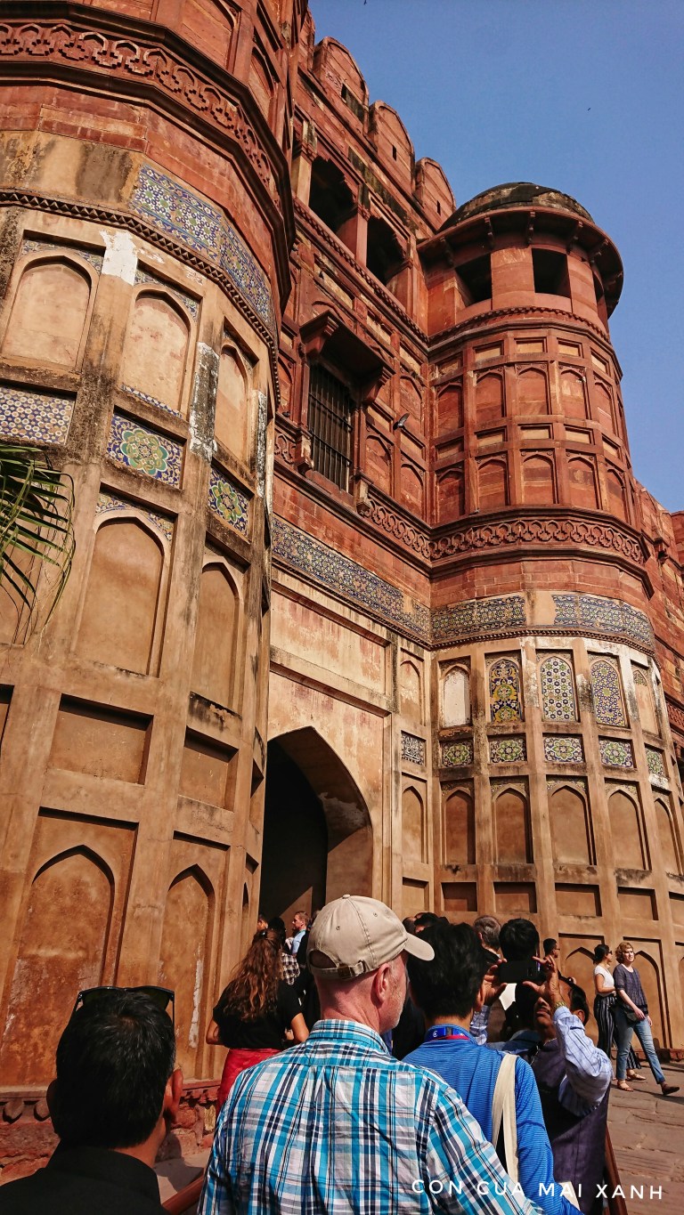 Ở Agra còn có một điểm du lịch nổi tiếng là pháo đài Agra – Agra Fort. Pháo đài này còn gọi là pháo đài đỏ, bởi được xây bởi đá đỏ. Gọi là pháo đài nhưng nó chắc phải to ngang một khu thành, tính ra gần gấp rưỡi khu Hoàng Thành Thăng Long hiện nay. Agra là cố đô của Ấn Độ, khu pháo đài này là nơi ở hoàng cung cho tới thế kỉ 17 nên không có gì bất ngờ khi nó hoành tráng như vậy cả. Đường vào cổng thành sở dĩ xây to như vậy để đảm bảo voi chiến có thể quay đầu. Lỡ kết Taj Mahal rồi mặc dù vẫn gật gù thấy pháo đài này hoành tráng những cũng không có quá nhiều ấn tượng. Thong thả dạo vài vòng rồi thong thả lên tàu về Delhi.