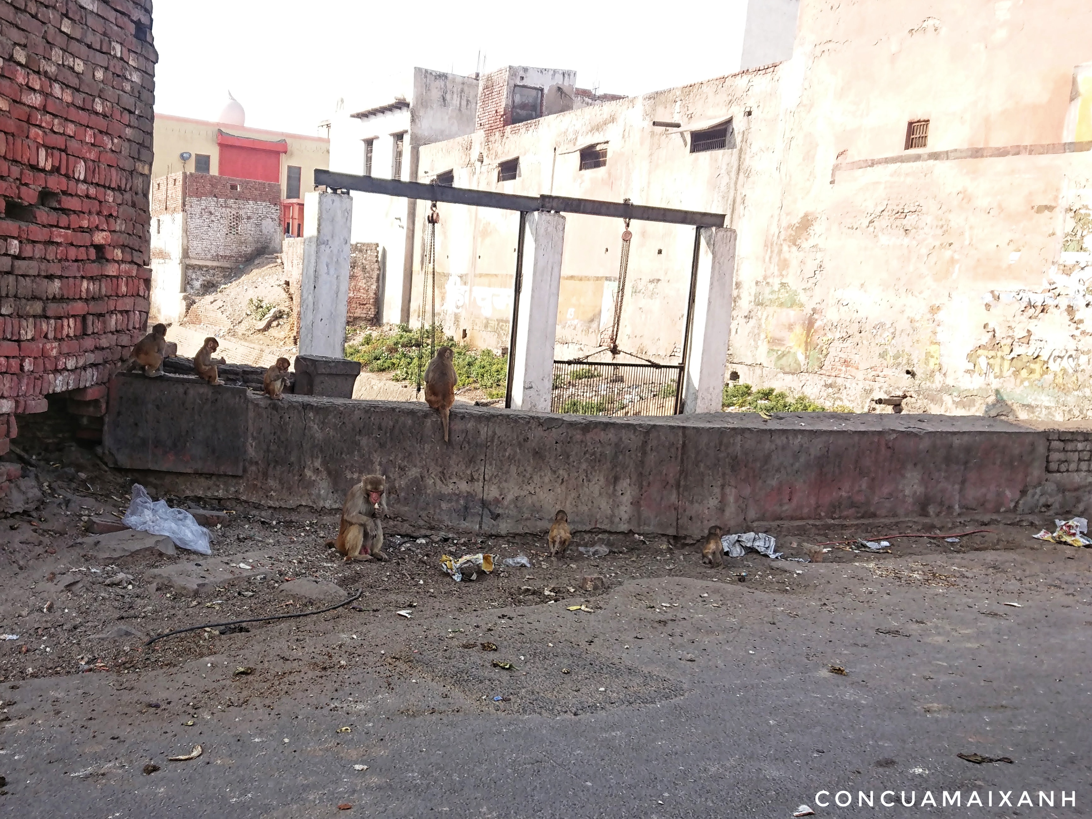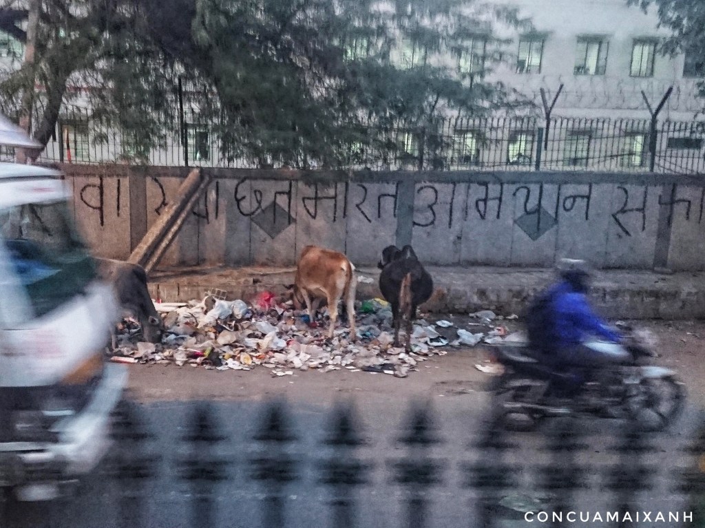 Nhưng mà đúng là Ấn Độ danh bất hư truyền về khoản bẩn. Rác ở khắp mọi nơi. Đứng giữa phố, giả vờ bịt mắt, quay vòng vòng và chỉ tay theo hướng ngẫu nhiên chắc 90% vẫn chỉ đúng bãi rác. Đường phố thì đúng là một bản hòa ca của còi và khói bất tận. Các bạn Ấn Độ bấm còi nhiều kinh khủng, phụ họa thêm bằng tiếng la hét nhức hết cả đầu. Nhưng mà cũng đúng thôi, vốn dĩ đường ở đây không chỉ dành cho người và xe, mà còn cả bò, chó, khỉ, nên âm thanh đi trước, hình ảnh theo sau là lẽ thường tình. Hình ảnh những chú bò thong thả tản bộ giữa dòng đời tấp nập hay những bầy khỉ ngồi bới rác thật hiền hòa và đầy chất thơ.