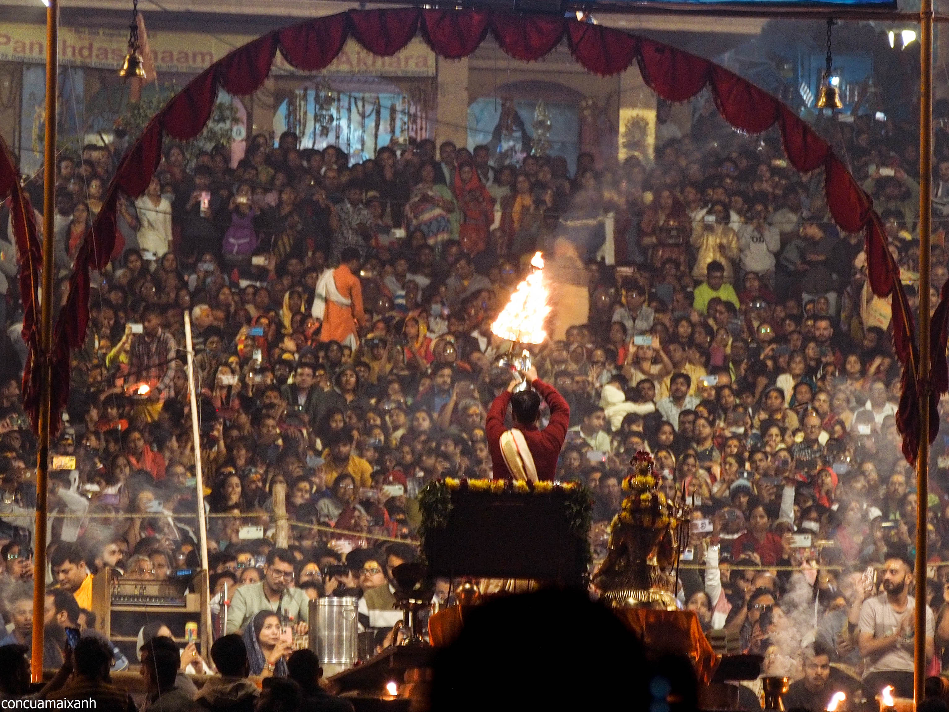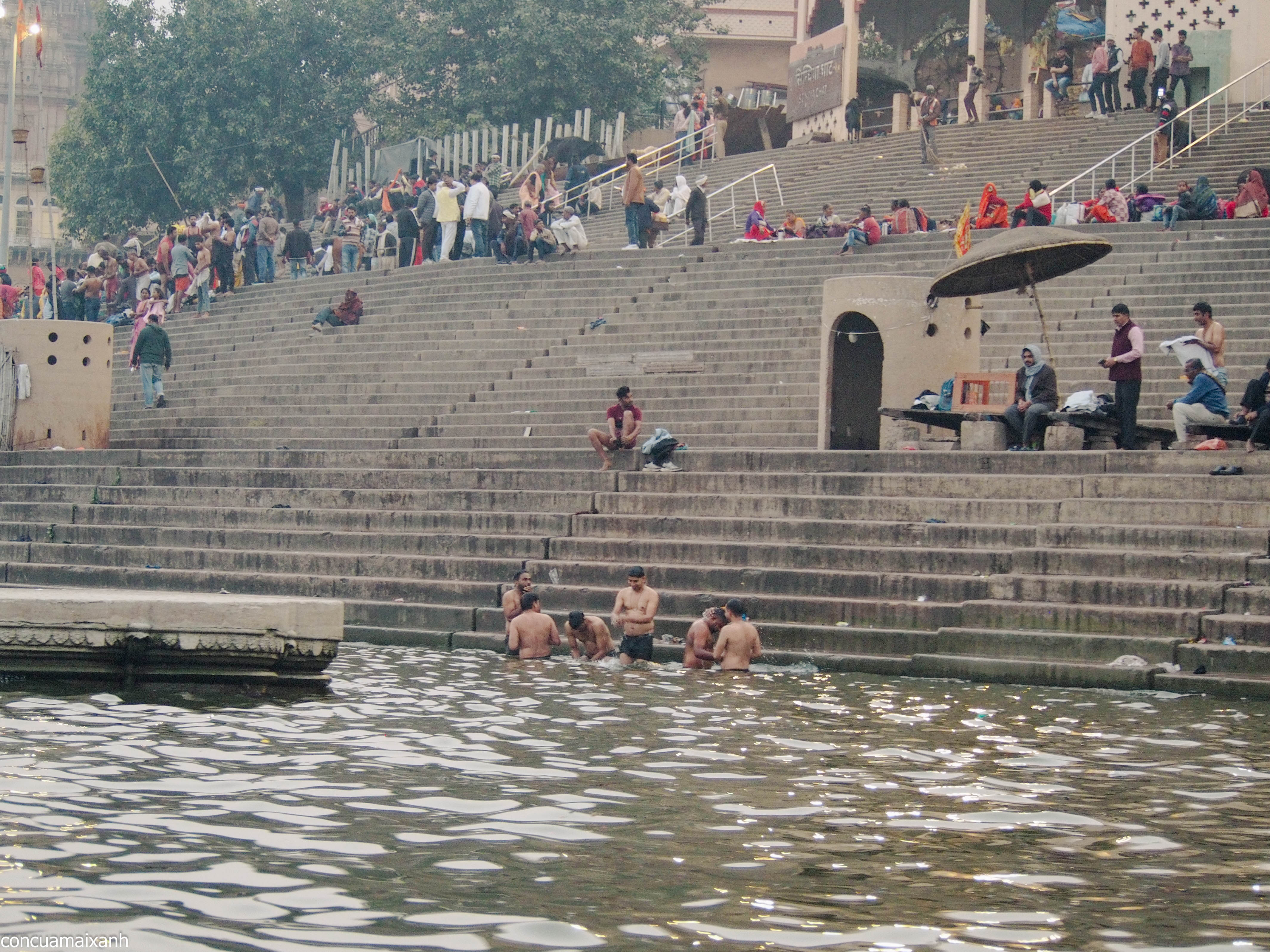 Bờ sông Hằng không chỉ là nơi tập trung người chết, mà còn là nơi tập trung người sống nữa. Dòng sông phì nhiêu đấy cũng là nơi các tín đồ Hindu tụ tập để cầu nguyện, và tắm rửa. Ai chết cứ chết, ai đốt cứ đốt, ai tắm cứ tắm. Không ai tắm hai lần trên một dòng sông cơ mà, thế này chắc gì người tắm đã tắm cùng sông với người chết. Đối với những tín đồ đạo Hindu thì đây là một thành phố thiêng, kiểu Mecca của người Hồi Giáo hay Vatican của đạo Thiện Chúa. Bởi vậy ngoài đường luôn chật ních các đoàn hành hương, có lẽ đủ các giai cấp. Sông Hằng lại là dòng sông thiêng nhất đạo Hindu, nên cũng không bất ngờ khi người Ấn Độ luôn muốn được chạm vào dòng sông thiêng nhất tại thành phố thiêng nhất của đạo Hindu nhà mình. Với con mắt ngoại đạo của mình thì thấy hơi sao sao, nhưng tôn giáo mà, đã tín thì phải tin.