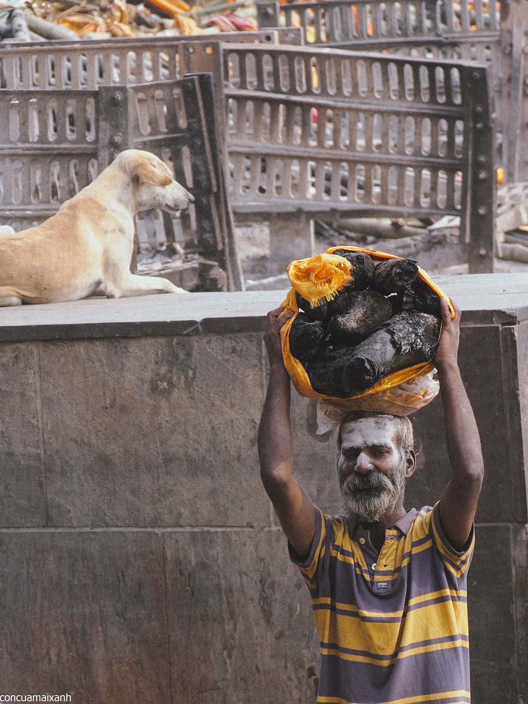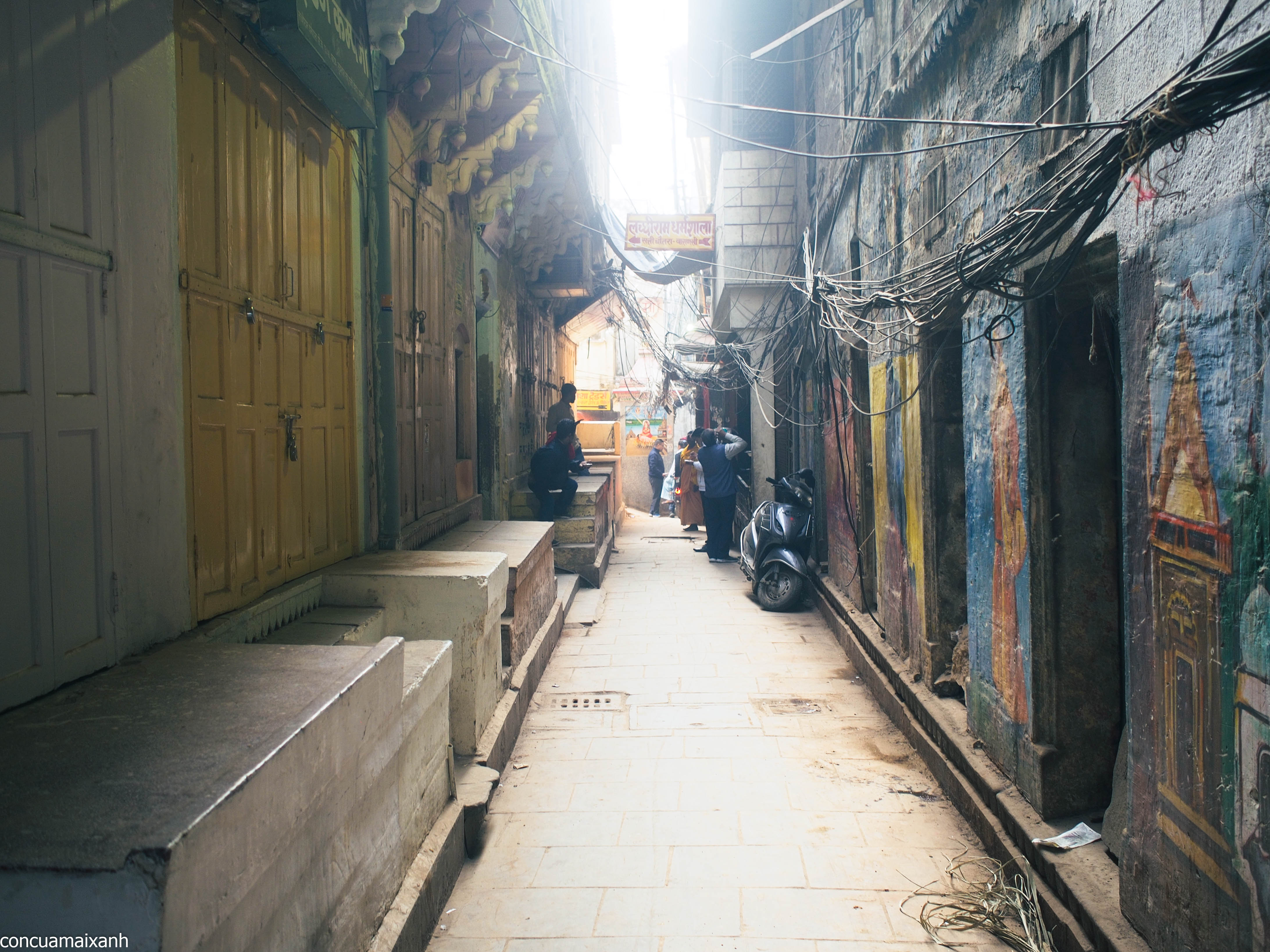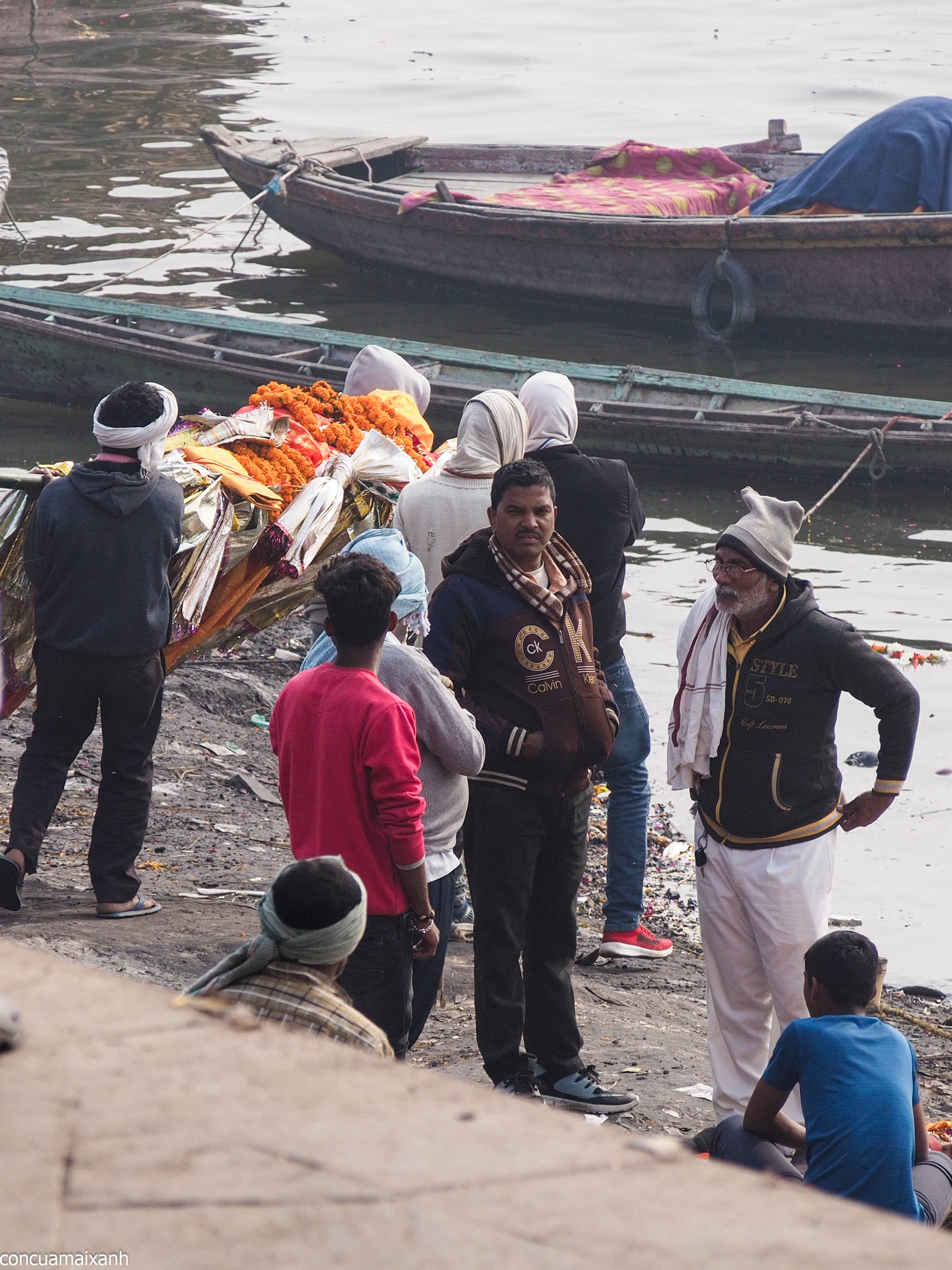 Đi vòng ra đằng sau cái ghat này sẽ là nơi chuẩn bị thi hài để thiêu. Ở đây sẽ có mấy bạn gạ dẫn đi lên đỉnh tháp để nhìn xuống cho rõ “for learning purpose”. Mình thì không háo hức nhìn người chết lắm, cộng với việc đường cứ nhớp nháp, không hiểu nước này trộn với những thứ gì trên đời nữa (phân bò thì chắc rồi, vì rất nhiều cục to chình ình), nên không lên làm gì.