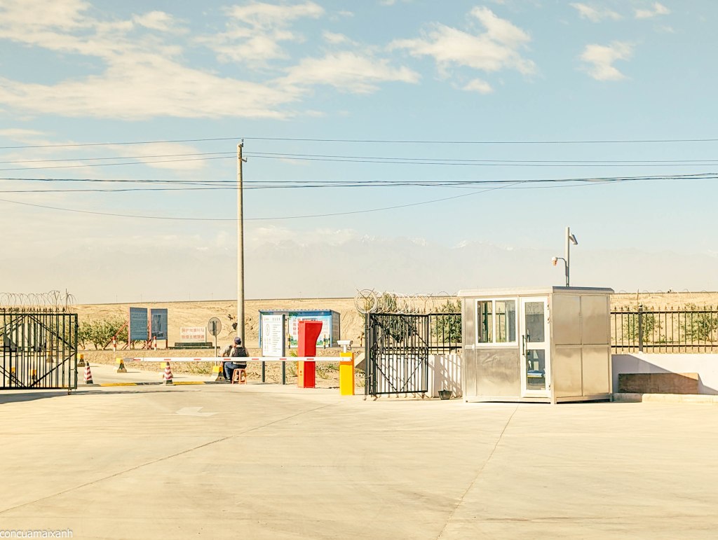 Đảm bảo an ninh ở Nam Tân Cương có lẽ là một trong những ưu tiên hàng đầu của chính quyền ở đây. Người ta hay nói về táo đỏ Tân Cương, nhưng mình thấy ở đây cây cam mới nhiều nhất. Camera ở khắp nơi, đảm bảo nhất cử nhất động đều được thu hình. Đi đường thì có những trạm kiểm tra, bắt buộc mọi hành khách phải nhìn vào camera. Bảo sao công nghệ AI nhận diện khuôn mặt của Trung Quốc phát triển.
